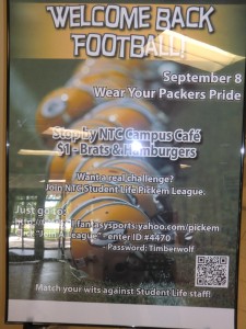 Die Euphorie macht natürlich auch vorm College nicht halt. Heute hat jeder der ein Packers-Sachen getragen hat im College-Cafe einen Hamburger oder eine Bratwurst für einen 1$ bekommen … Lehrer, Studenten, Mitarbeiter eigentlich haben alle Packers getragen über all grün und gelb J. Das war auch deshalb sehr besonders da sonst alle eher schick gekleidet sind.