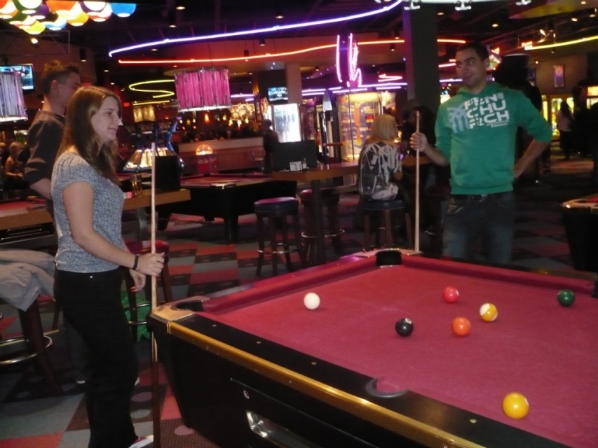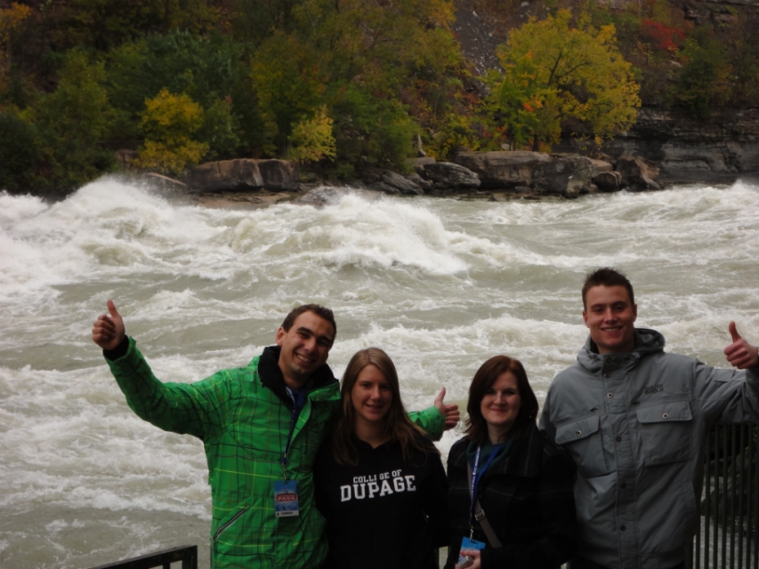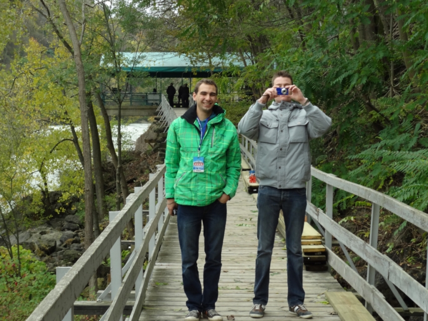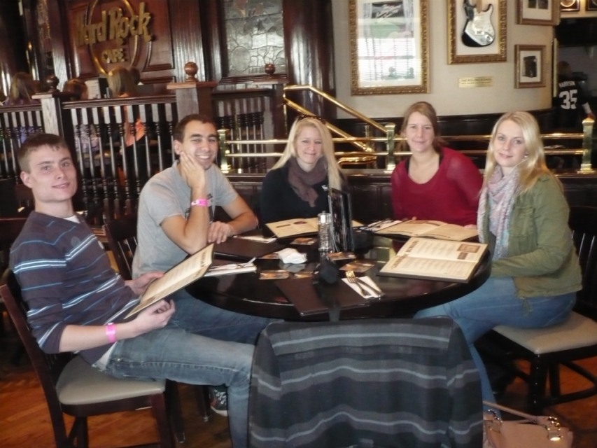 Samstagmorgen sind wir dann Paul’s Tipps folgend erst mal den Niagara hoch gefahren und haben an ein paar Stationen einen kurzen Stopp gemacht z.B. am Whirpool. Nach ca. 1 Std (mit Stopps) waren wir dann in Niagara on the Lake ein kleines romantisches Städtchen an der Mündung des Niagara in den Lake Ontario – totales Kontrast Programm zu dem Disneyland an den Fällen selber. Nach einem Kaffee, Fotos und einem Blick über Lake Ontario auf Toronto sind wir wieder ins Auto und zurück zu den Niagara Fällen. Dort haben wir dann verschiedene Attraktionen besucht: Den „White Water Walk“ ein Steg der ein Stück unterhalb der Fälle am Niagara entlang führt und einem zeigt welche enormen Kräfte das Wasser dort aufbietet. Dann haben wir die „Journey Behind the Falls“ gemacht wo man einen Tunnel hinter den Niagara Fällen entlang geht. Ganz ehrlich: Wenn man den Adventure Pass hat, und die Attraktion da mit drin ist, ist es ganz nett ansonsten kann man sich das Geld dafür sparen. Dann lieber die „Maid oft he Mist“ Bootstour machen. Das war für mich und für die anderen bestimmt auch, das absolute Highlight der Tour. Es ist einfach ein unbeschreibliches Gefühl, wenn man mit den kleinen Bootschale vor den riesigen Niagara Fällen fährt. Gegen 17:00 Uhr sind wir dann an den Niagara Fällen aufgebrochen und sind den Niagara in die andere Richtung bis zum Lake Erie runter gefahren (30 Minuten) und sind dort zum Glück ohne größere Probleme an den Grenzkontrollen wieder in die USA. Von dort sind wir dann nach Cleveland gefahren und haben dort eine Nacht bei Natalie (einer anderen PPPlerin) und ihrer Gastfamilie übernachten können. Auch hier gab es natürlich bis tief in die Nacht jede Menge Gesprächsstoff. Morgens sind wir dann zu fünf (Natalie, Effi, Stefan, Caro und Ich) nach Cleveland zur „Rock’n’Roll Hall of Fame“ gefahren wo wir dann auch noch Marion vom PPP getroffen haben, die zufällig auch in der Cleveland war (Danke Facebook!). Danach waren wir noch kurz in der Downtown von Cleveland und als gebührender Abschluss im Hard Rock Cafe. Achja, die Hall of Fame ist direkt neben dem Stadion der Browns dem Football Team aus Cleveland, die zufällig ein Spiel an dem Tag hatten, wodurch wir unvorstellbare $25 für Parken bezahlen mussten. Auf jeden Fall sitzen wir im Hard Rock gucken das Spiel und auf einmal wird uns bewusst: Mist die spielen noch 15 Minuten und wir stehen direkt beim Stadion auf einem Parkplatz und wir müssten heute noch 8 Std. fahren. Kurzum wir haben uns so schnell wie möglich auf dem Weg zu unseren Autos gemacht und es quasi mit dem Schlusspfiff vom Parkplatz geschafft (Zum glück stand es bis zum Ende 3:3). Gegen 24:00 Uhr waren wir dann zwar total müde aber glücklich zurück in Milwaukee wo wir eine weitere Nacht geschlafen haben.