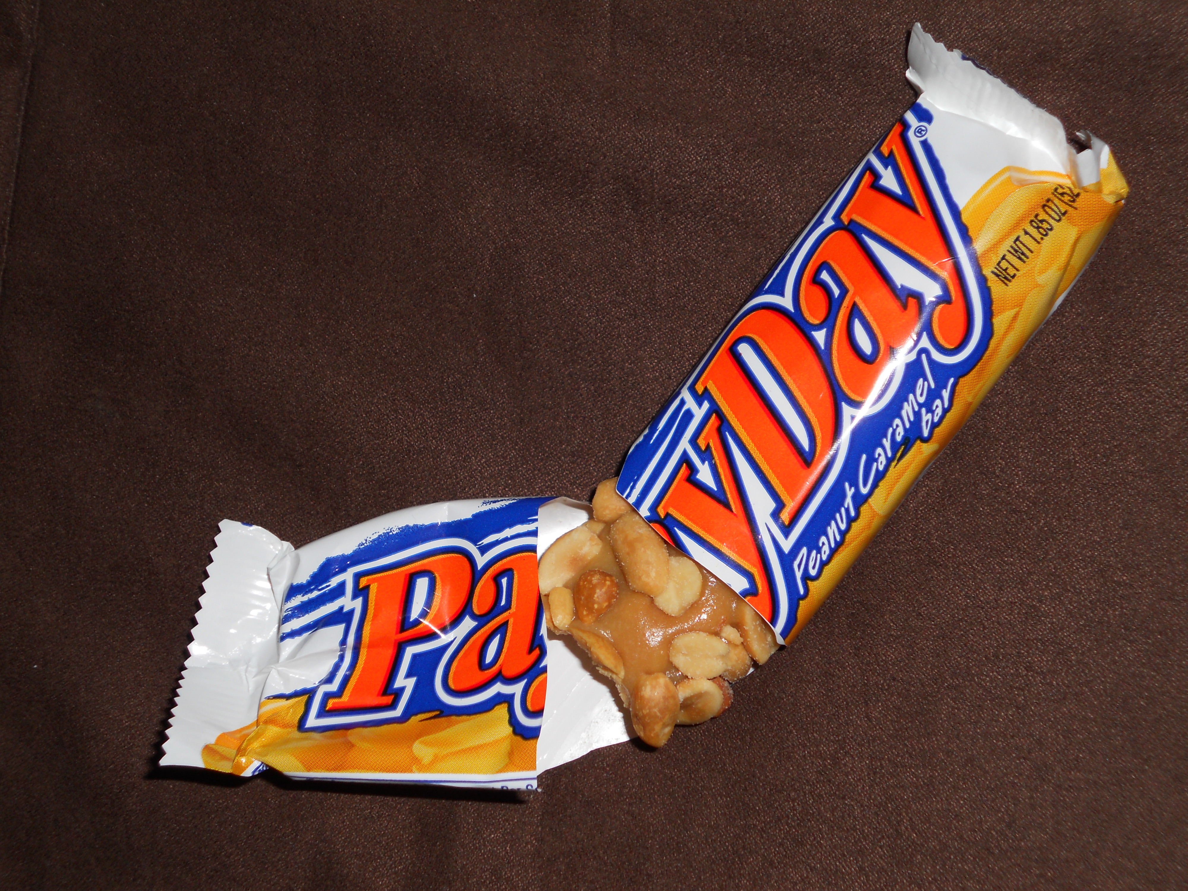 Payday: Erdnussbutter/Caramel Riegel mit salzigen Erdnüssen obendrauf. Kling seltsam- sollte man aber unbedingt probieren. Macht süchtig!