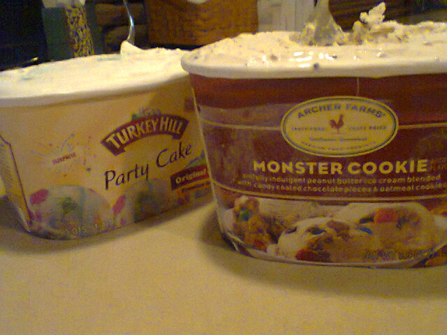 Party Cake: Vanille-Eis mit Kuchenstückchen in NeonPink/Grün. Schmeckt echt ziemlich nach Kuchen.